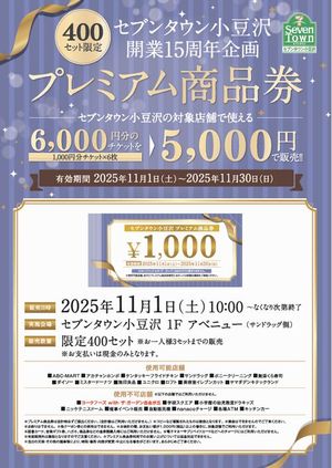 EVENT 【11/1(土)】セブンタウン小豆沢開業15周年企画プレミアム商品券