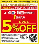 ヨークフーズwith ザ・ガーデン自由が丘 小豆沢店LINE公式アカウントにnanacoを連携した方限定!4月4日(土)、5日(日)の期間中に、1回使える5%引ク...