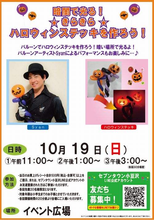 【10/19(日)】ハロウィンイベント 暗闇で光る!★ きらきら ★ハロウィンステッキを作ろう!