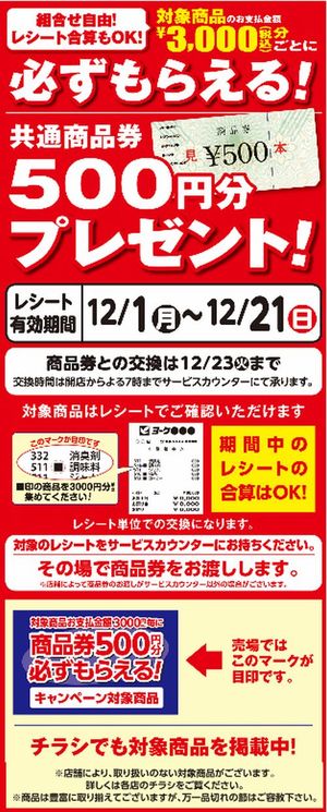 ※詳しくは、チラシまたは店頭にてご確認ください。