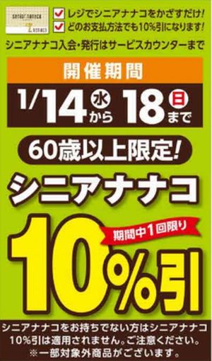 【1/14(水)₋18(日)】シニアナナコ10%引!
