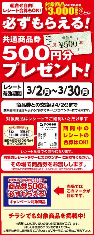 ※3月2日(月)から3月30日(月)までのレシートが