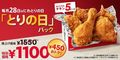 毎月28日限定の「とりの日パック」! KFCを代表する唯一無二な逸品である 「オリジナルチキン」を、 より多くの方にお召し上がりいただきたい、 おいしさを再